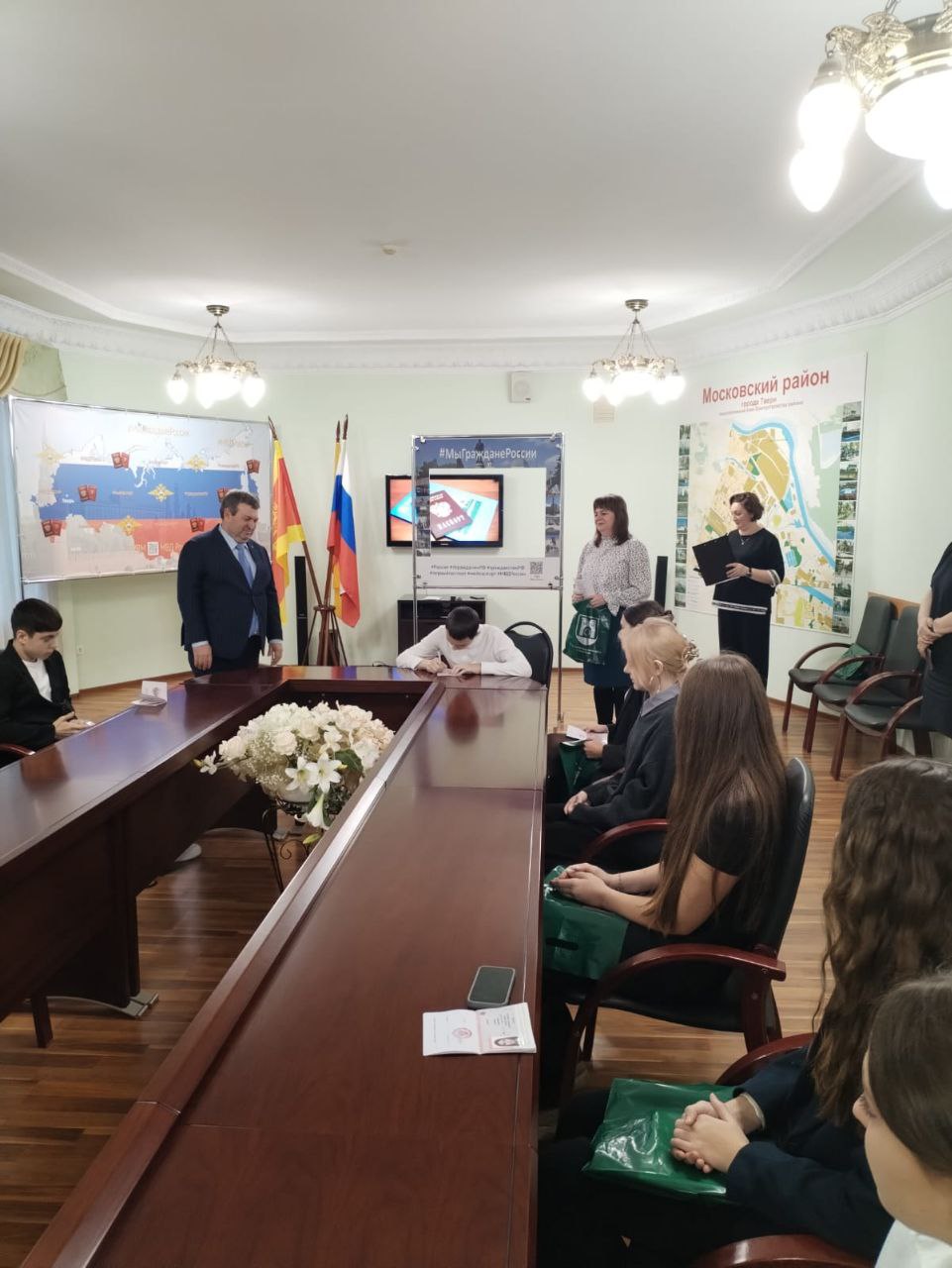 В преддверии Дня Конституции заместитель председателя Законодательного Собрания Тверской области Александр Клиновский и председатель ТИК Московского района Твери Оксана Бабкина вручили паспорта Российской Федерации юным гражданам.